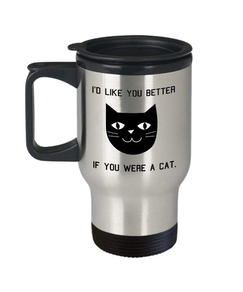 MORI-TM, Travel Mug - I'd Like You Better If You Were A Cat 14oz Stainless Steel Insulated Double Wall Coffee Cup with Handle and Lid – Best Funny Cat Gift for Men Women Dad Mom Boy Girl
