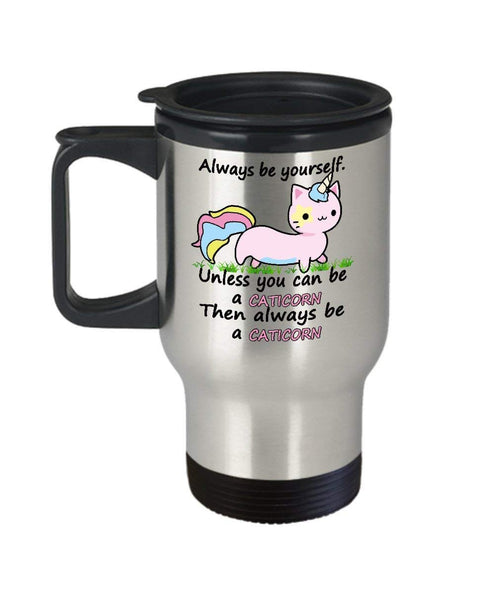 - MORI-TM, Travel Mug - Always be Yourself Unless You Can be a Caticorn Quotes 14oz Stainless Steel Double Wall Coffee Cup with Handle and Lid; Best Funny Cat Gift for Men Women Dad Mom Boy Girl