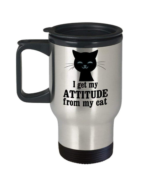 - MORI-TM, Travel Mug - I Get My Attitude From My Cat 14oz Stainless Steel Double Wall Coffee Cup with Handle and Lid – Best Funny Cat Gift for Men Women Dad Mom Boy Girl